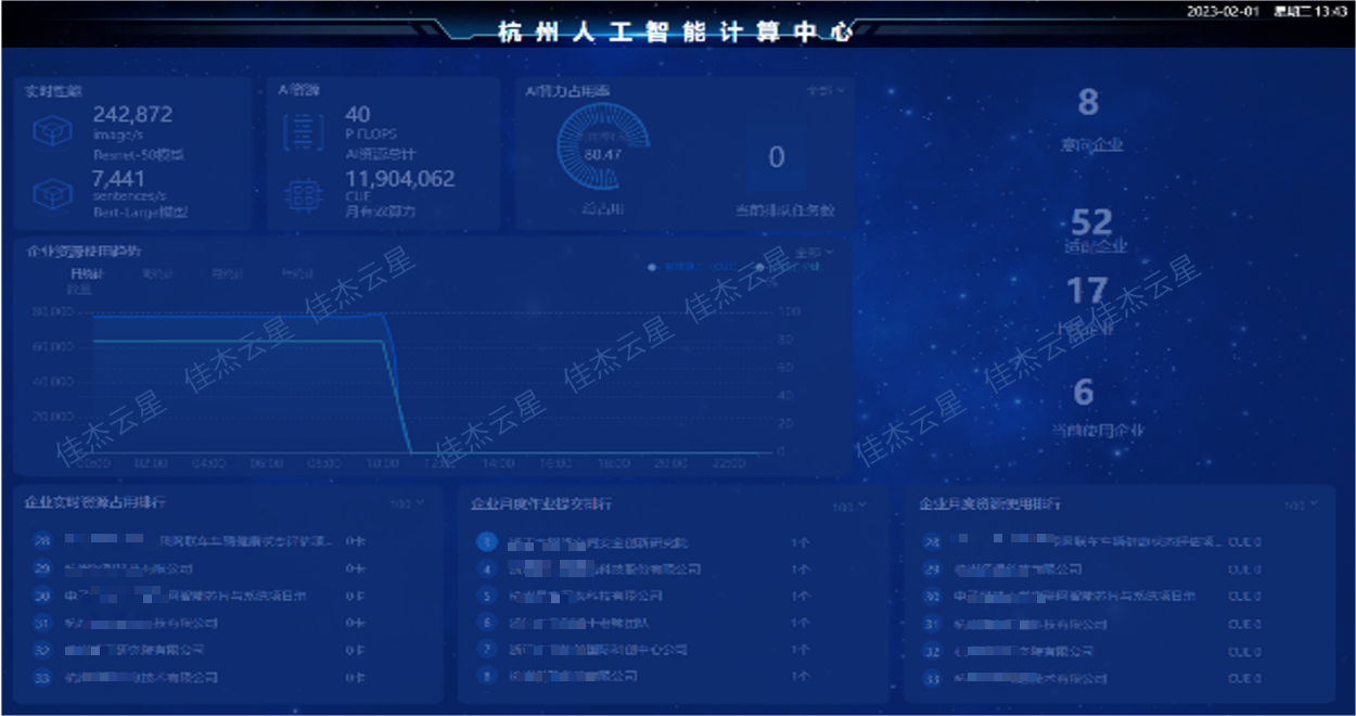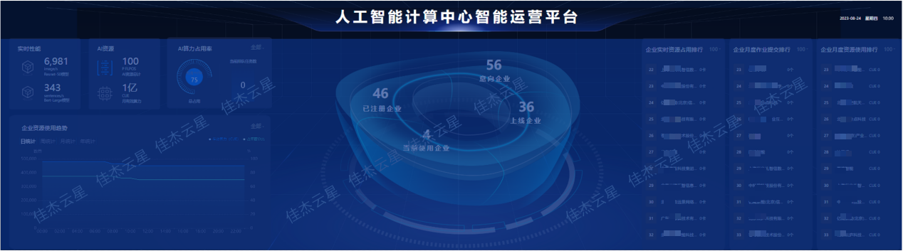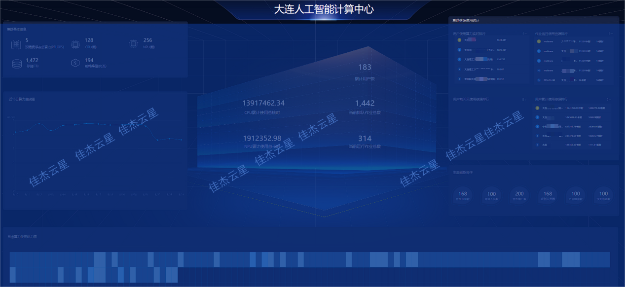 西安未来人工智能计算中心通过佳杰云星的智能云运营平台实现公共算力运营与服务化,通过智能云运营平台丰富、灵活、完善的运营管理能力,支撑了未来人工智能计算中心组织的多场次、大规模产业活动。